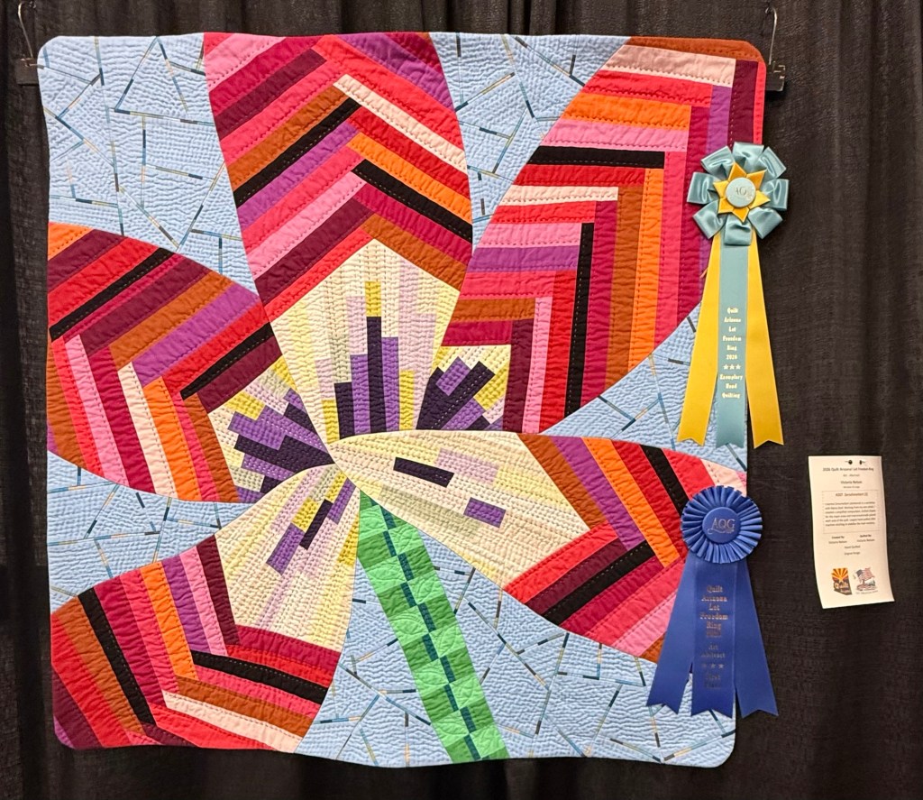 I’m calling this one, The Get Along Quilt. Have you seen the internet pictures of the two kids wearing a single t-shirt that says “Get Along Shirt” on it? The idea is that they have to wear it until they can get along and play nicely together. I was reminded of that with this center panel. In this case, Grant and Lee seem to be getting along quite well!