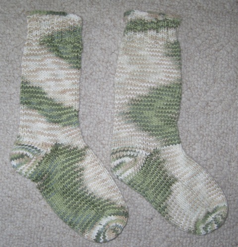 Okay, these are not so earth shattering. They are basic utilitarian socks. I am happy because I learned to make toe up socks with a no wrap short row heel. They fit and I used every inch of the two skeins I used, which was the reason I wanted to learn this method!