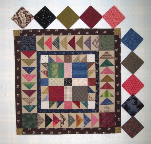 I am not sure about the squares on point for the next round. I may have to rethink that. Otherwise, I like what is sewn thus far.