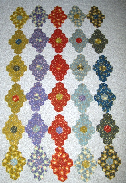 If I go with this layout, I will need to piece a lot more diamonds in something plain to tone them down a bit. This is the best I can come up with at this point. I need a good hand project next week and thought this would be it. I guess I need to sleep on this one, one more time….