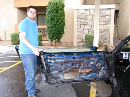 While he was home, I helped a bit with a small project on his ’77 Trans Am. This time he was replacing door panels: