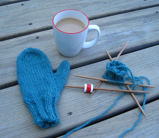 ….is now open! When the temps hit the 80s, I declare it to be mitten knitting season. I try to fill a bag in the summer and then I give them away when winter comes. I can’t stand the thought of little kids having cold hands because they do not have warm mittens.