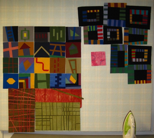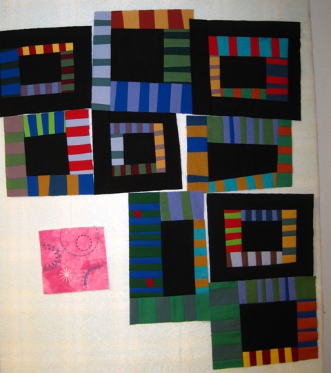 The small pink block is an experiment with quilting/embroidery with perle cotton.