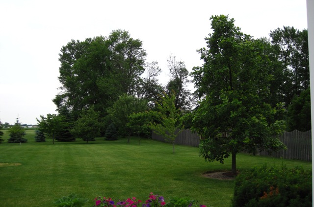 That oak tree to the right is my favorite tree in the yard. It was on clearance at the end of the summer a few years back and it was the scrawniest, half dead looking thing you ever saw. It is now the straightest, most lovely tree we have! It keeps its leaves until spring and drops them just before the new ones come out.