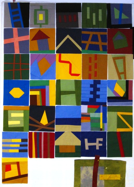 You could maybe leave in the configuration they are in as a wall hanging with a plain background and fabric loops to resemble one of those spiral bound wall calendars. You know, the kind where you flip the page over to reveal a new photo at the end of each month. Or is that too literal? Do let us know where you take the blocks next on their creative journey.