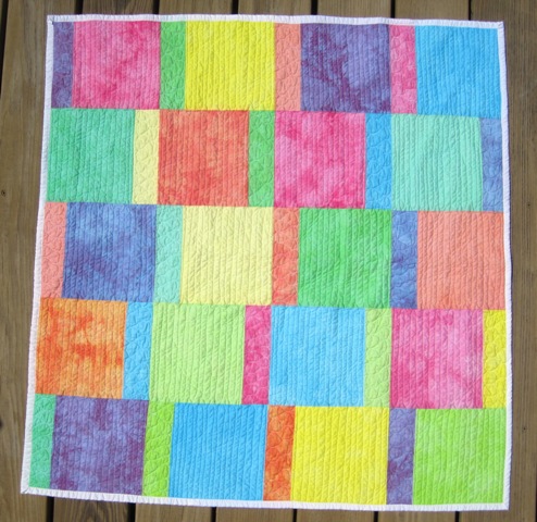The fabrics are hand dyes I cooked up when learning to dye a rainbow using the terrific instruction provided by Melissa at Fabric Dyeing 101. If you are at all interested in learning to hand dye fabrics, you must read her blog! Such a generous person to share all her years of wisdom on the subject. This blog gave me the courage to finally take the plunge and try this.