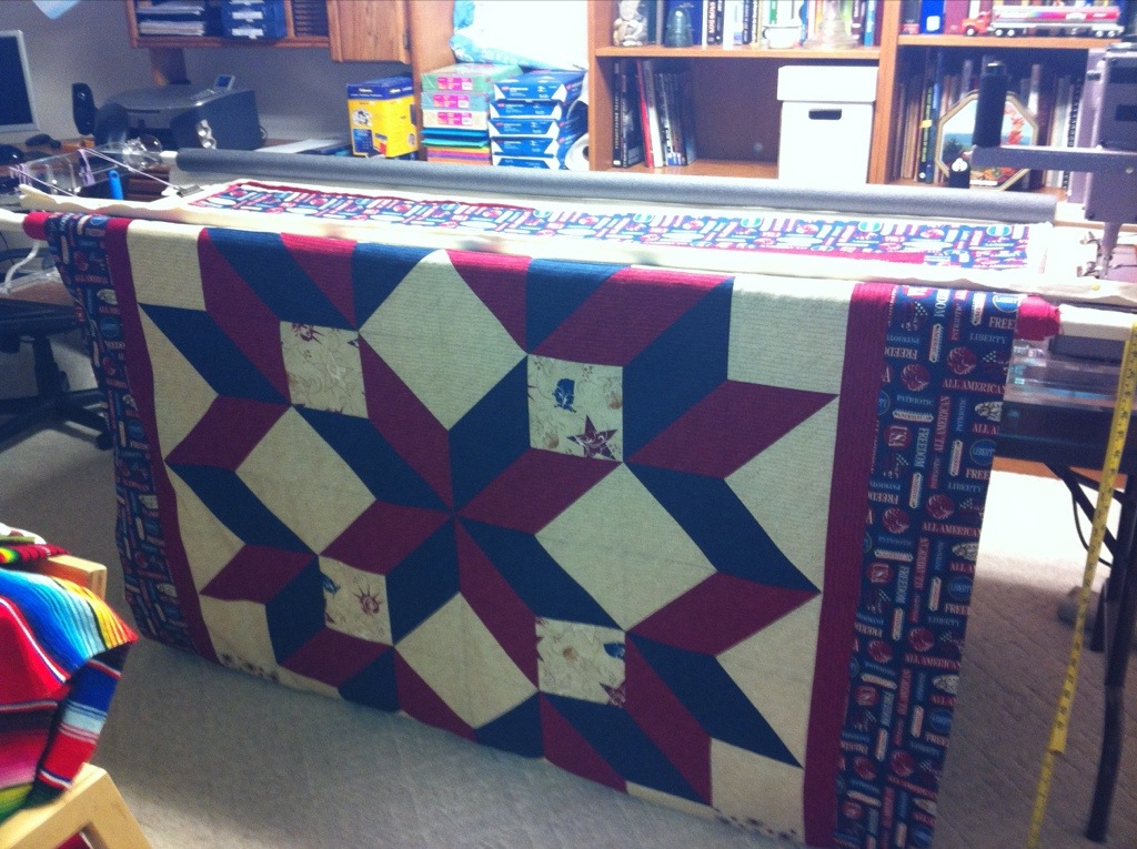 I also completed the top of my challenge quilt for the HMQS show and have it loaded into the frame. Now I need to decide how to quilt it.