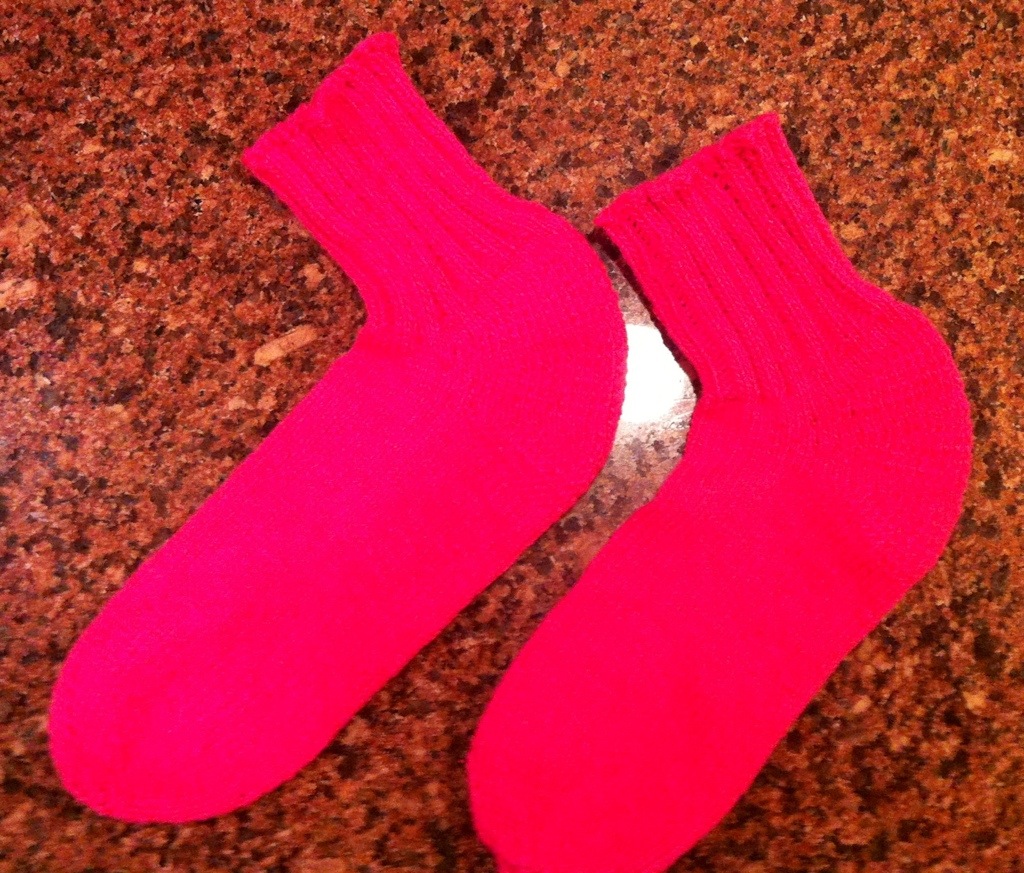 One of my goals for the year was to knit one pair of socks every two months. I am a slow knitter! I was t sure I would finish my first pair by the end of February but my trip home fixed that. I started the second sock of this pair last Friday while traveling to Wisconsin. I finished it, except for the binding off, on the trip home. I got it off the needles tonight using Jenny’s super stretchy bind off. You can see a video tutorial on this bind off here.