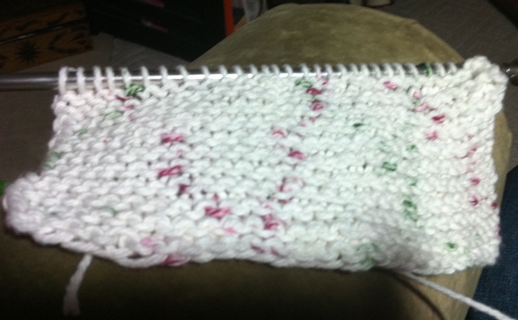 I started a simple garter stitch dish cloth as it got too dark in the car to work on the sock.
