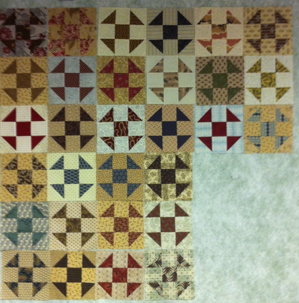I cut all the pieces with my studio cutter. It took a lot longer to pick fabrics than to cut them! I need to decide if I want to cut more or stop here. Decisions, decisions.