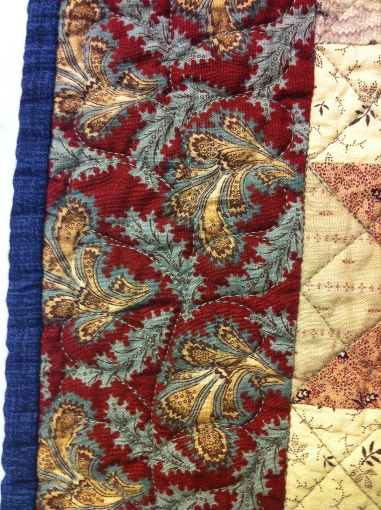 I absolutely love this star quilt – the fabrics you chose are perfect. It’s busy-ness gives it so much character. Doing freehand feathers on a busy print is the perfect way to practice!