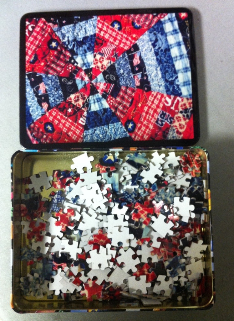 How cool is that? I love the tin it came in too! They sure surprised me this year. I have a big party here this weekend but Sunday evening it will be puzzle time!