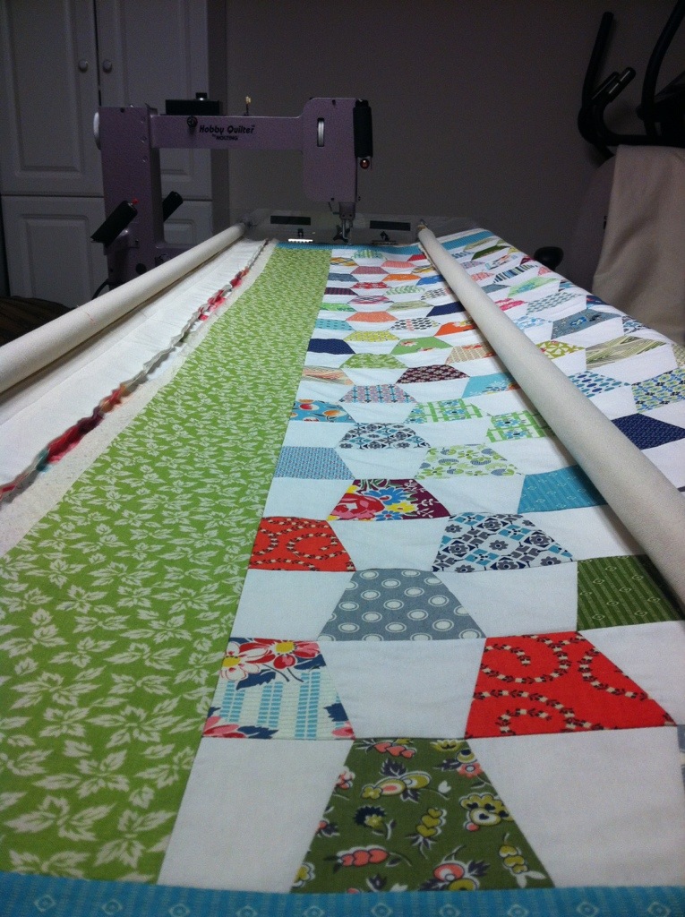 I got the tumbler quilt loaded this week but have yet to start the quilting on it. I am not yet sure how I want to quilt it so here it waits for now.