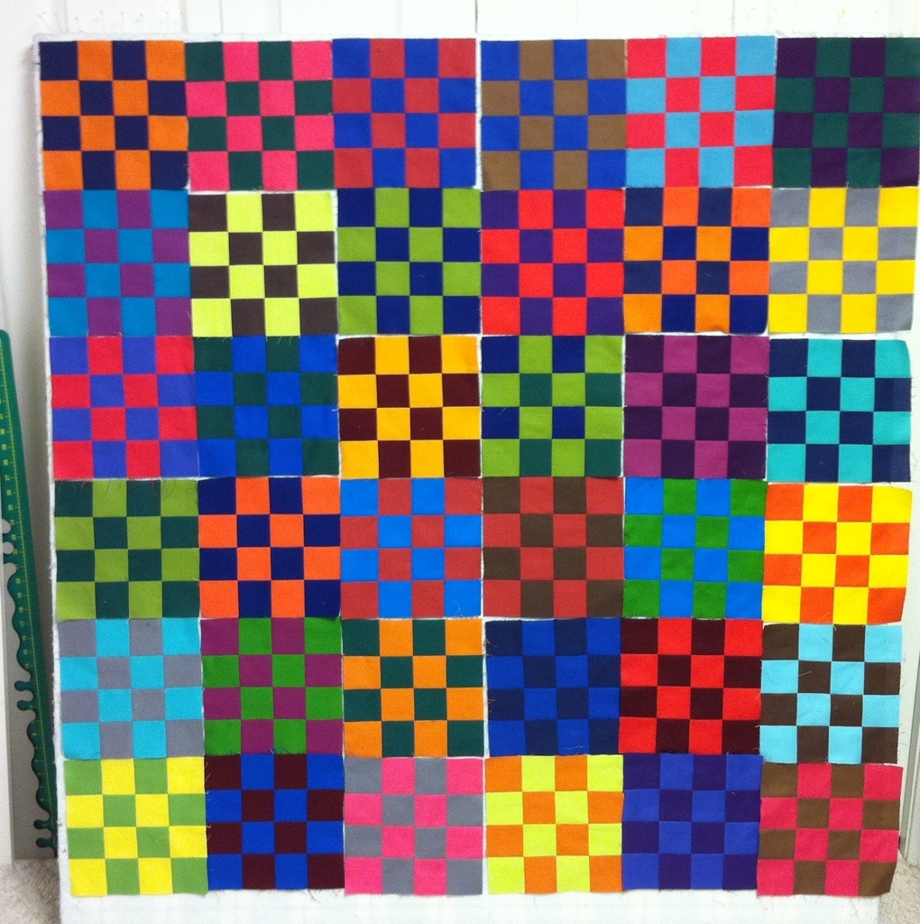 I have made more of the 16 patch blocks from solids. This is how I subcut my strips using my studio cutter: