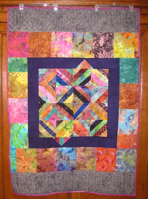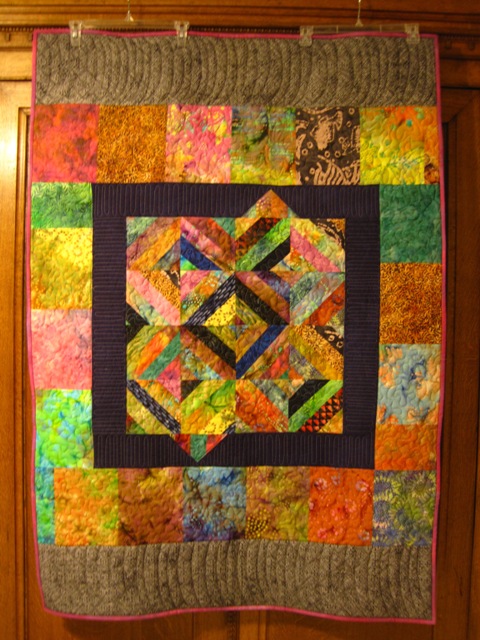 The quilting obviously doesn’t show. It does look better after washing. The thousands (okay, maybe not really that many) of thread breaks made this a miserable project. I hoped for better success on the batik quilt I showed yesterday. It was marginally better. The first pic shows the truest color and the second shows the quilting better.