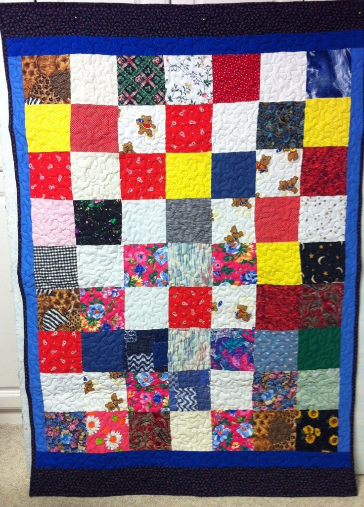 I have also started quilting some tops for Quilts Beyond Borders. Carla sent me three tops this week and the first is quilted and bound.