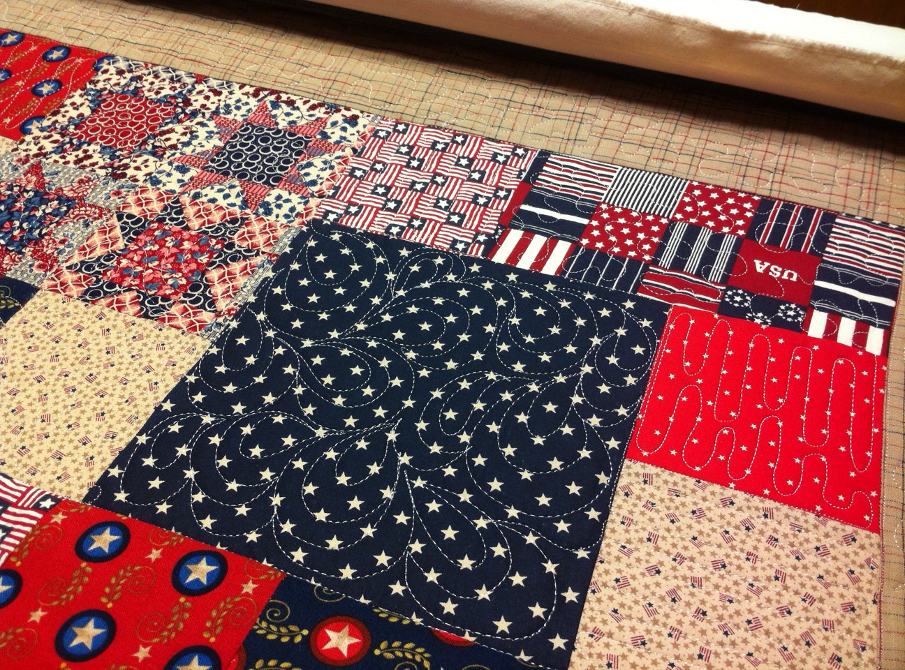 I loaded my May Quilt of Valor this morning before work. This is the Take Five block and it is a fun quilt for practicing machine quilting. I can do each square with a different doodle.