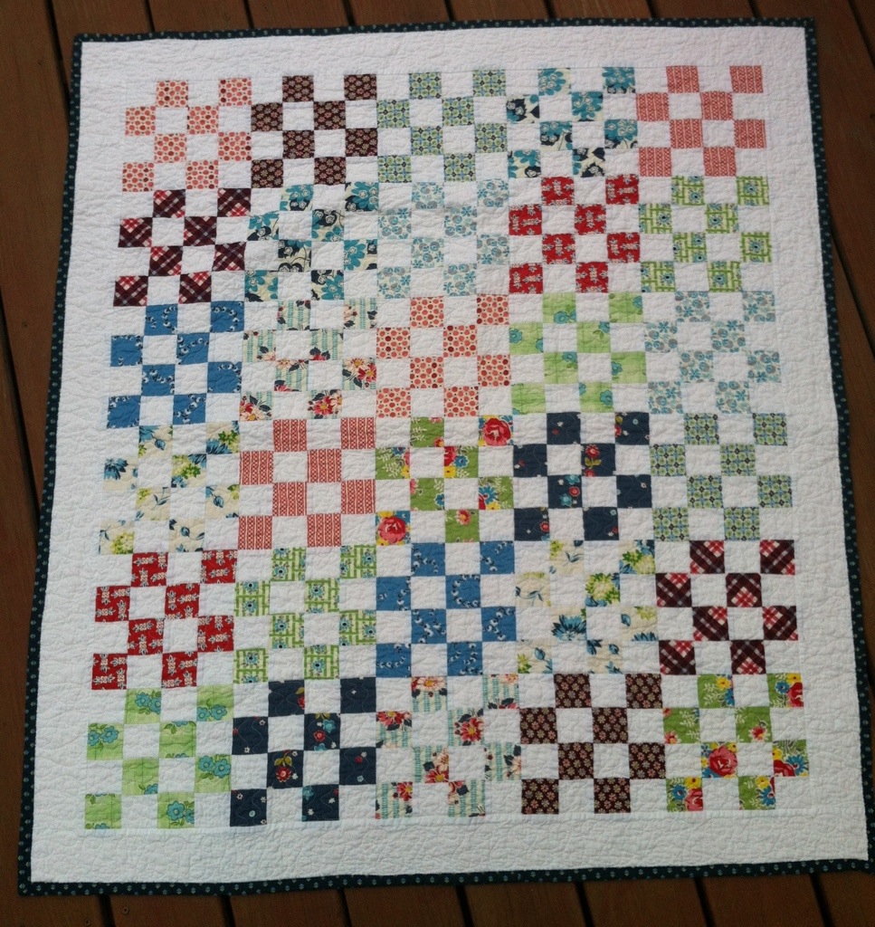 Love the scrappy quilt. And the backing is a nice addition. Great job!!