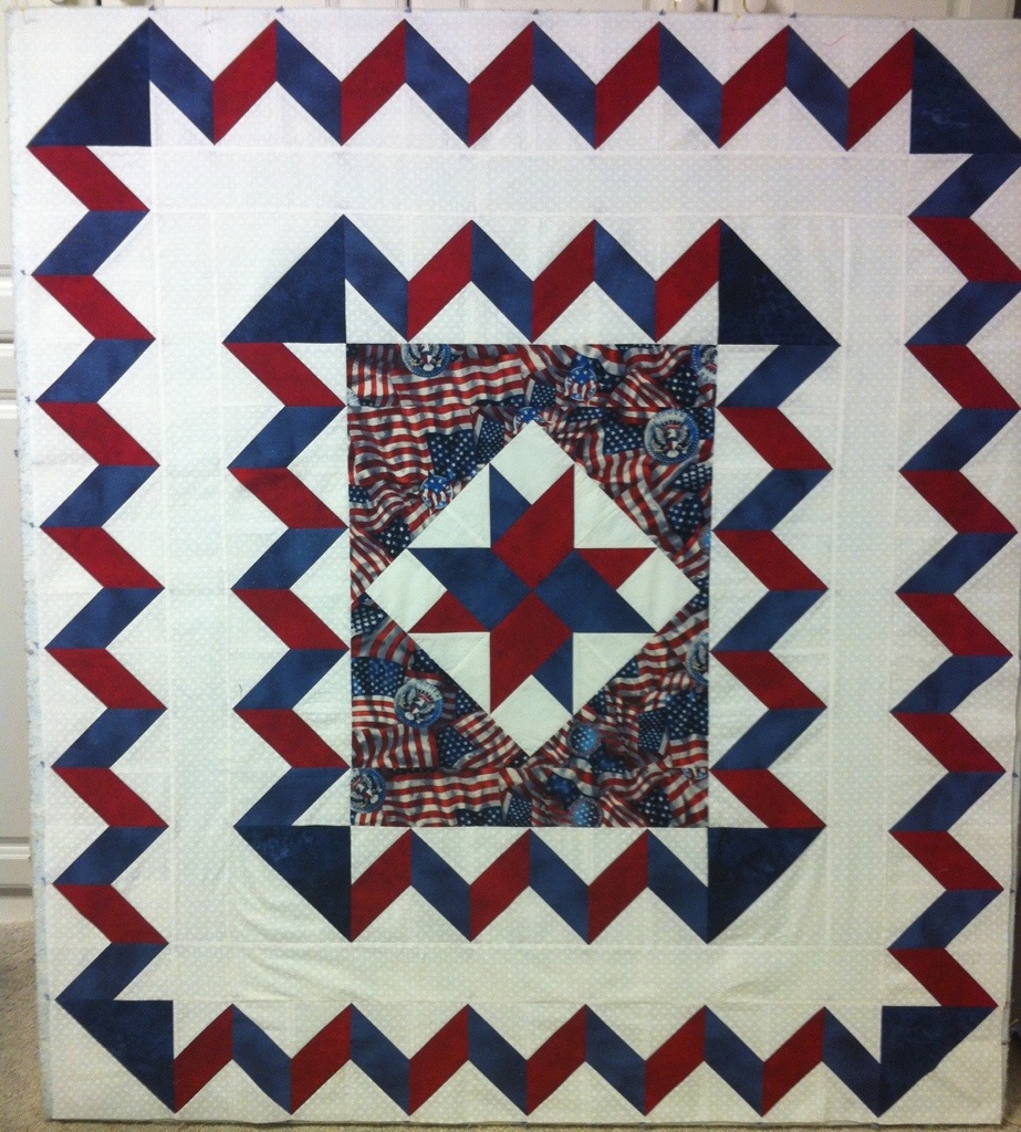 This will have a border of the flag fabric added and the the top will be done. I hope to get it loaded today but since I work this afternoon, it is iffy.