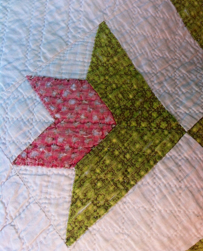 Hello!! Did you know the “dropout” on the faded red part of your antique quilt helps date it? It’s probably from before 1870!! I have one that has the dropout and a friend brought me an article about it. The dyes they used before a certain date caused that.