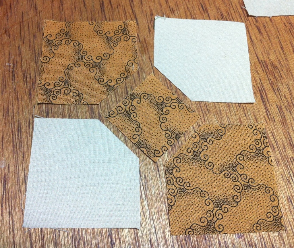 I have one complete block and enough bits for 11 more cut and ready to piece. I also have just the “tie” parts for another 11 blocks.