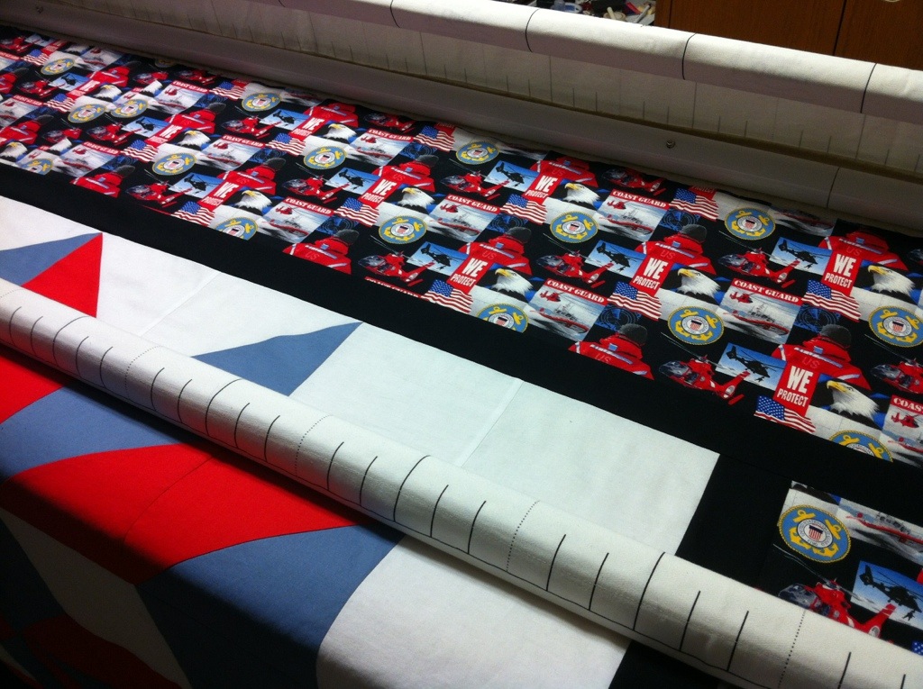 I even got my laundry done and went to an art quilt meeting yesterday! I am still debating the quilting. The border will probably get a simple loopy meander since it is fast and won’t show anyway. I would really like to do feathers in the star diamonds but I am not sure I brave enough! On the Home Quilting Systems Yahoo group, many people have posted pics of their Carpenter Star quilts quilted with feathers based on lessons by Judy at Patchwork Times. They are so beautiful!