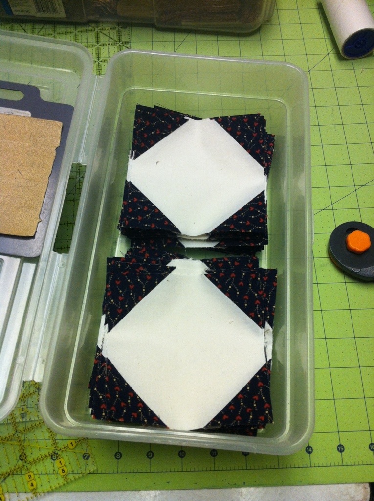 That is what 60 4.5″ blocks look like! I still need to sign them. Next I need to focus on the 60 blocks needed for the other swap I am taking part in. These blocks are 6.5″ and I have 12 complete.