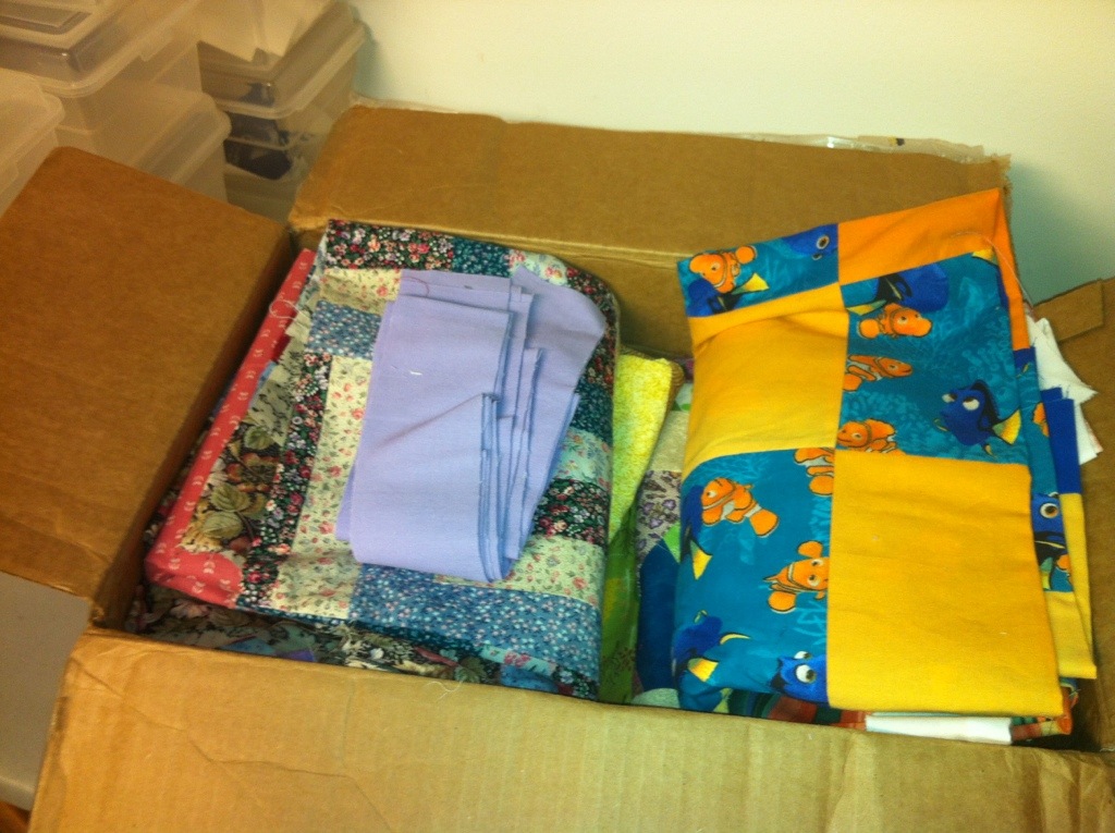I returned home to find this box of tops, backing a, and bindings waiting for me.