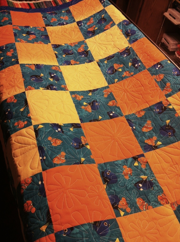 What a cute quilt! And I really like how you’ve chosen to quilt it. It makes the whole quilt sing – front and back!