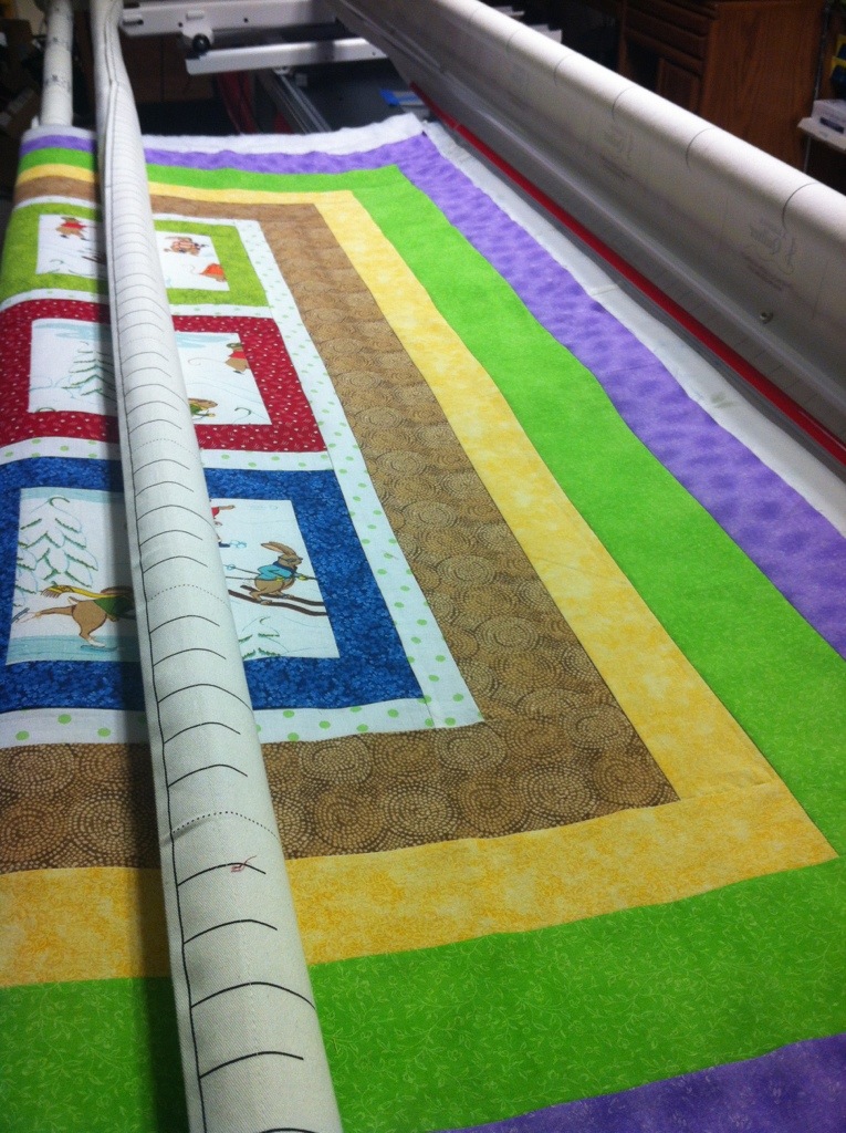 Still working away at my stack of Quilts Beyond Borders tops. This is loaded but I won’t start quilting today.