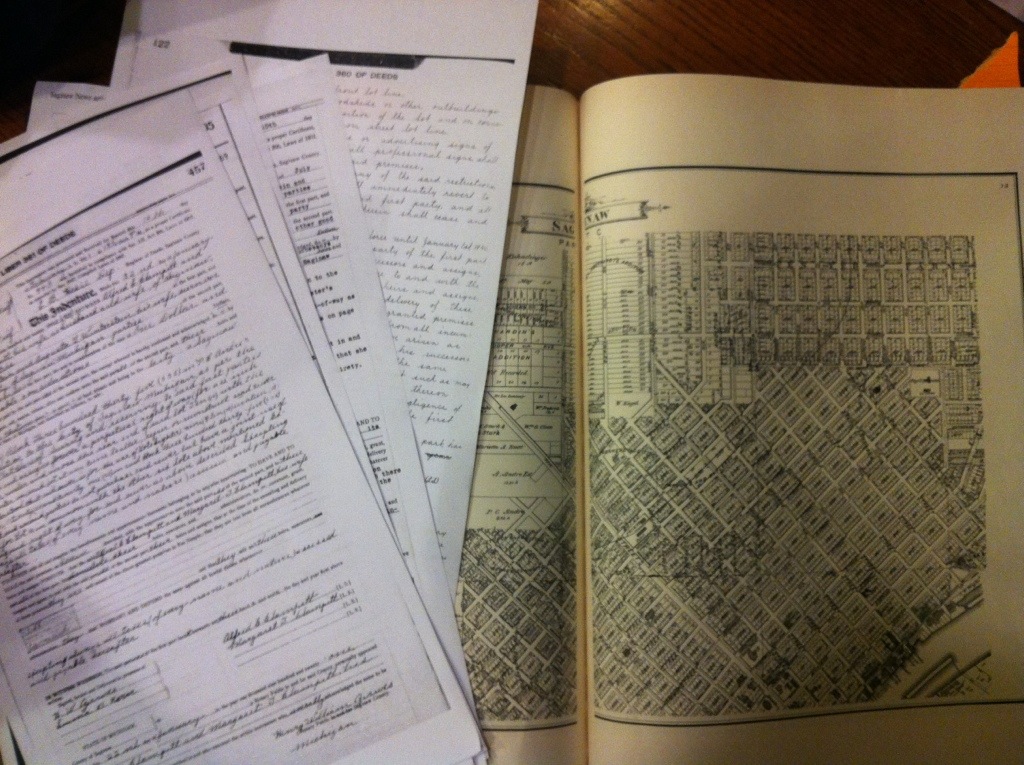 We were told the house was built in 1916. I have been going through old city directories to see who lived there. Yesterday, I went to the city assessors office and the Register of Deeds to further my research.