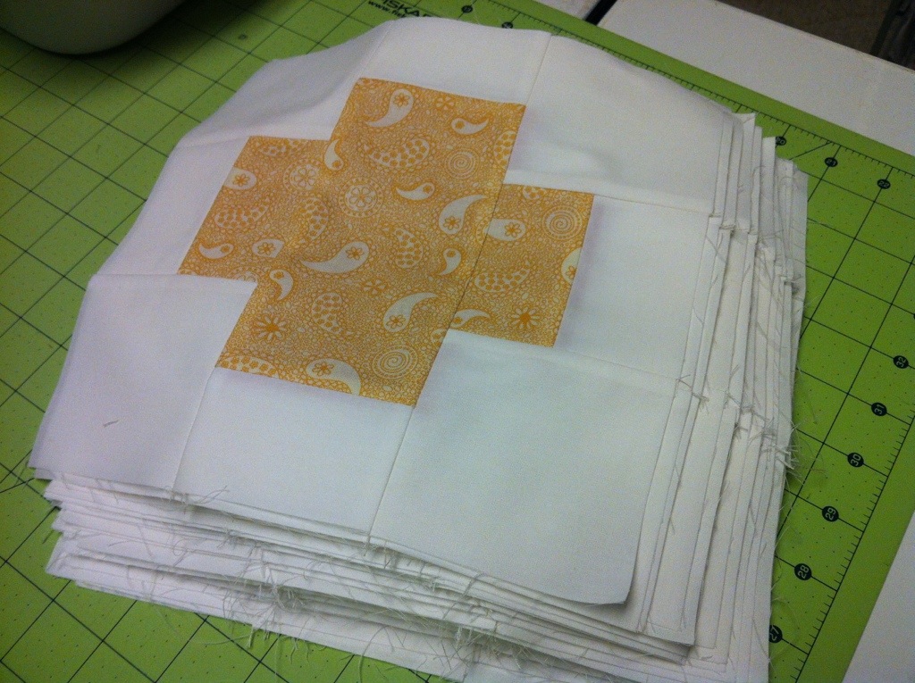I made 13 of the following blocks for a quilt for a thank you gift. I actually have them finished and sewn together and today will add a border before work. I hope to get the back ready and get it in the frame yet this week.