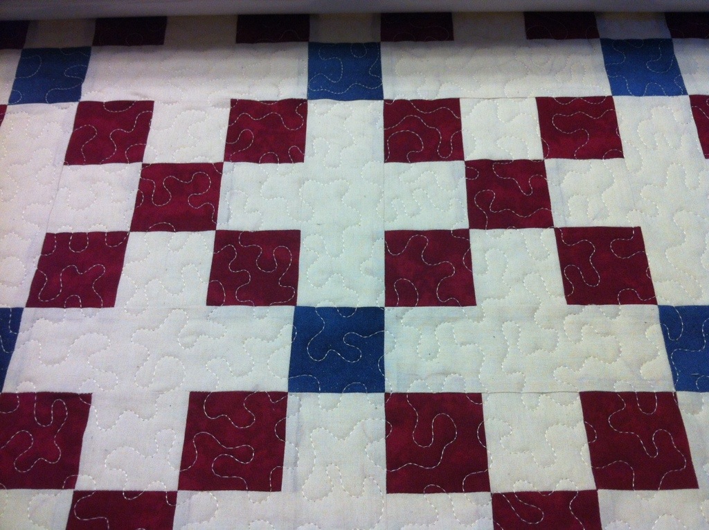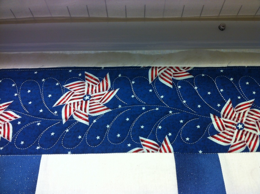 It has rained here all weekend. If it dries up enough, I need to mow the lawn today. But first I hope to get the binding on the QOV I finished quilting last night. Here are a few sneak peaks: