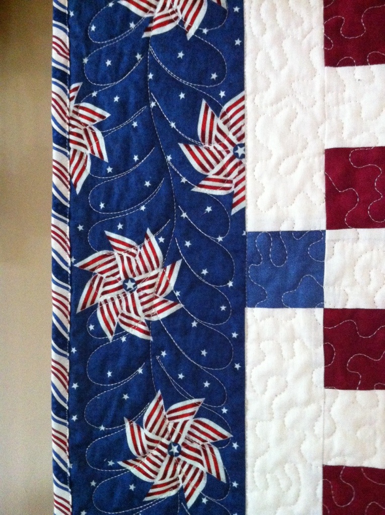 You did a great job of quilting that one! I like the eagle, even if he is not readily visible, he’s still there, just like the Spirit of America. Your daughter is beautiful! Lots to be proud of and thankful for.