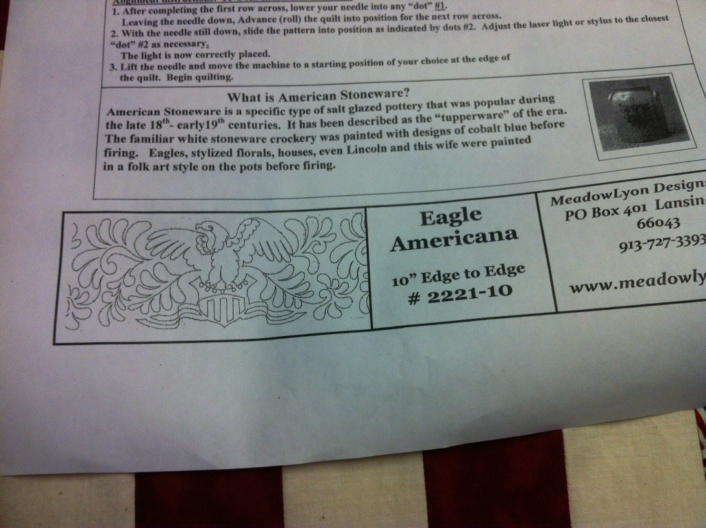 Can you see the eagle quilted in the center? I had this wonderful panto from Meadowlyon Designs: