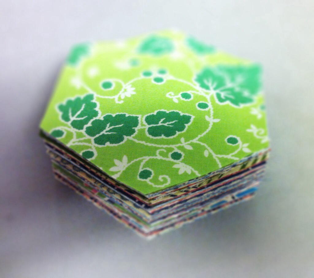 The other night, I cut some of my Denyse Schmidt stash into hexies with my studio cutter.