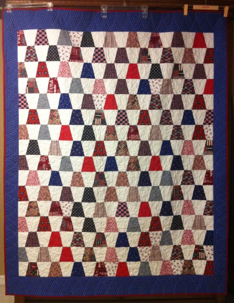2. Finish one QOV top, prepare backing, and load it for quilting.