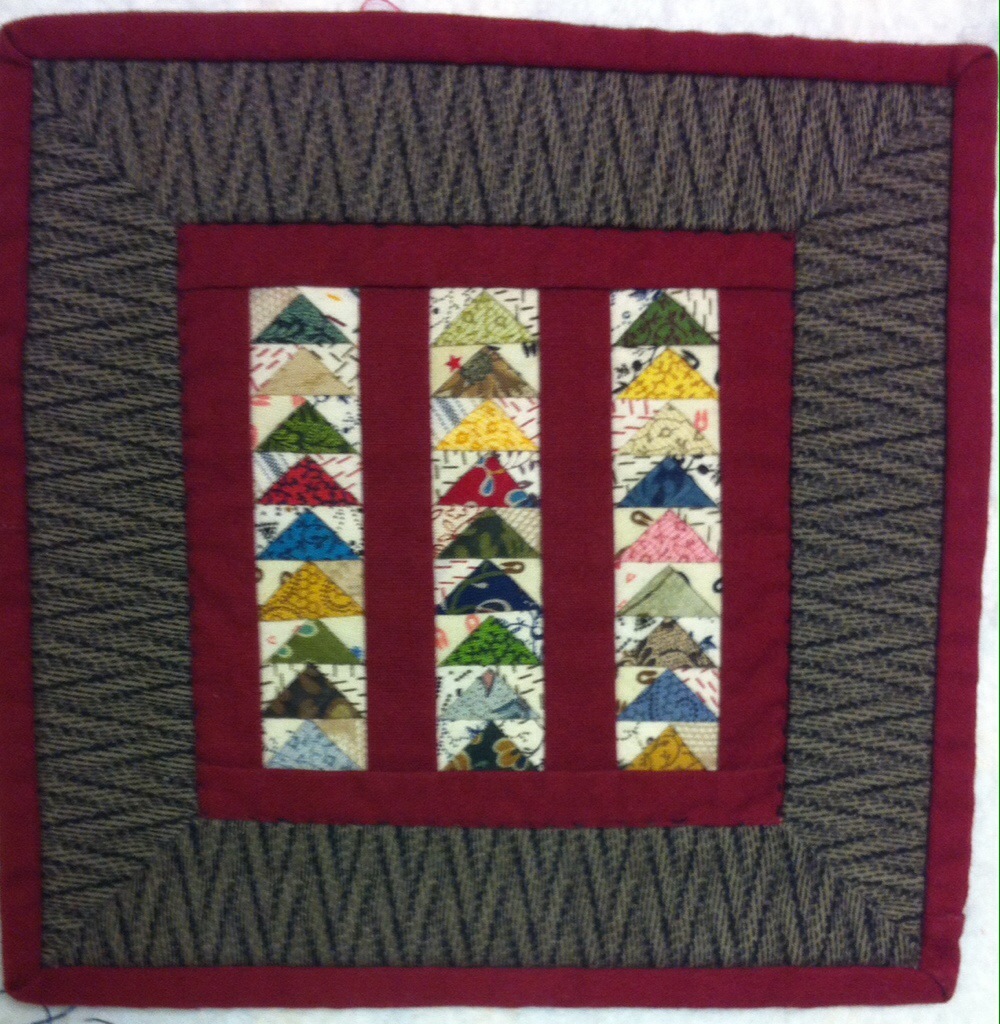 This is one of my very first small quilts. The flying geese are a half inch high. I paper pieced this mini.