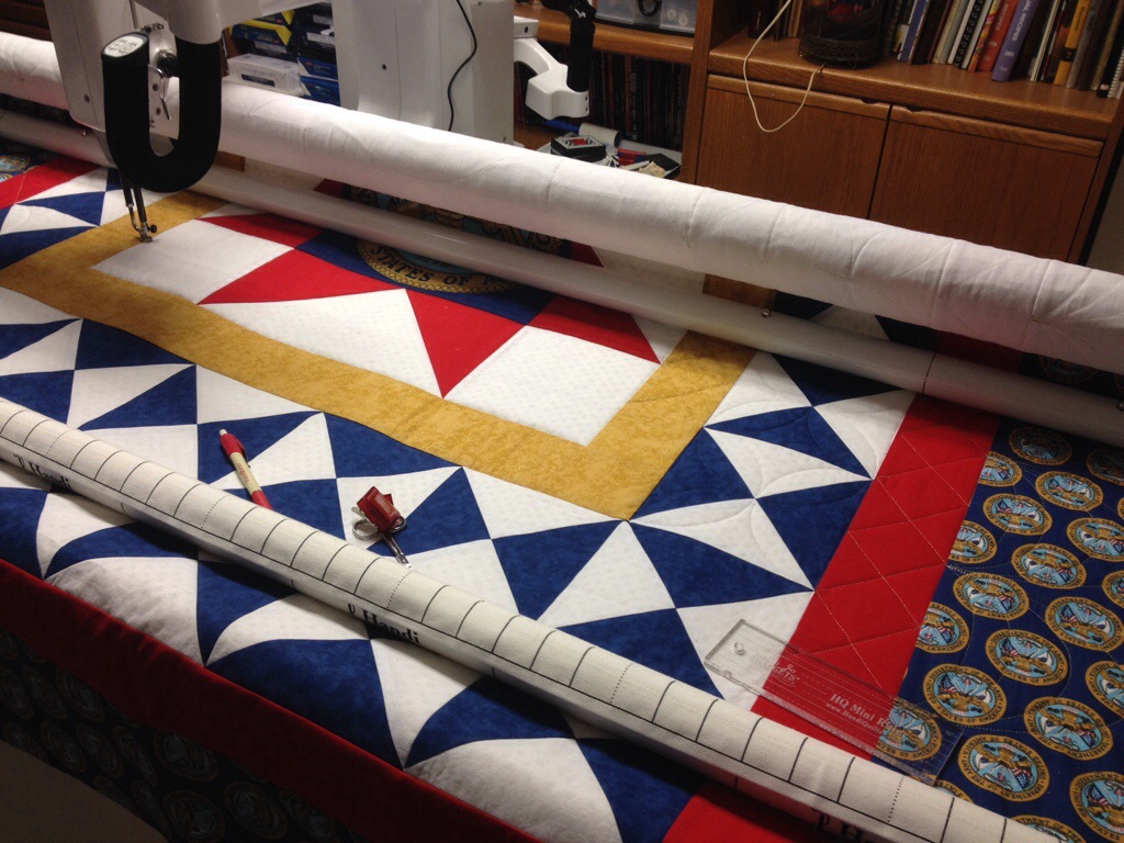 I have been working away at quilting this QOV and hope to finish the quilting before work today.