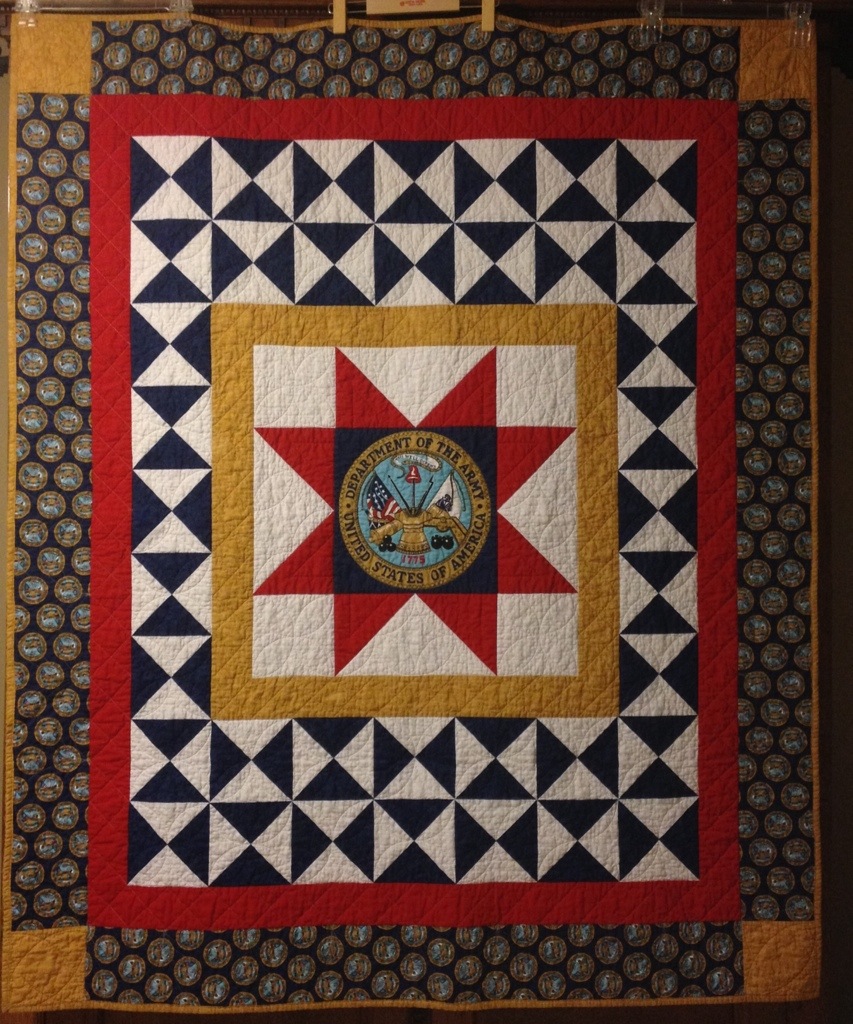 I love both of these quilts. I have the small army fabric, but where did you get the medallion in the middle? I’d love to copy these quilts for a couple QOV’s I need to make in February. They are just perfect.