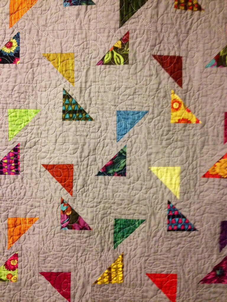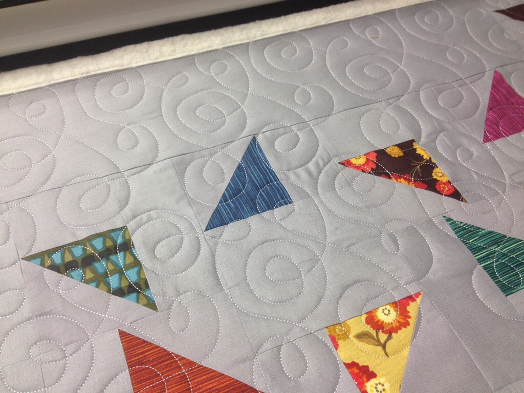 I got one more finish in last night before bed! It was a productive day. After I finished at sawtooth star baby quilt, I finished piecing the confetti quilt top and got it loaded on the frame.