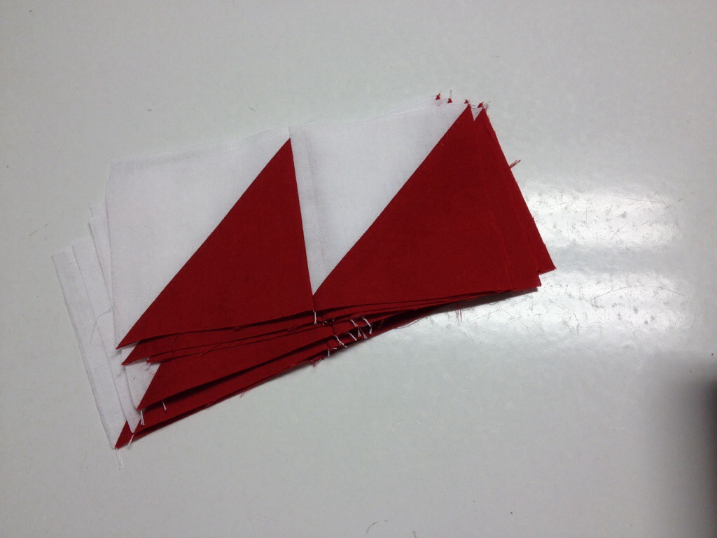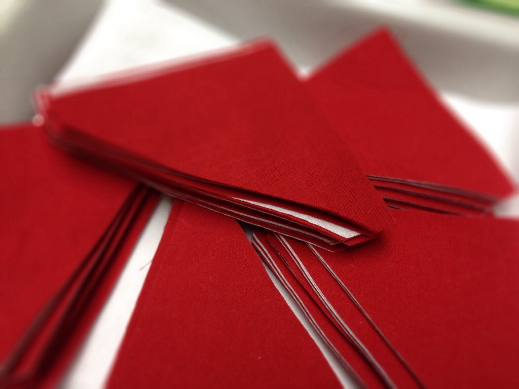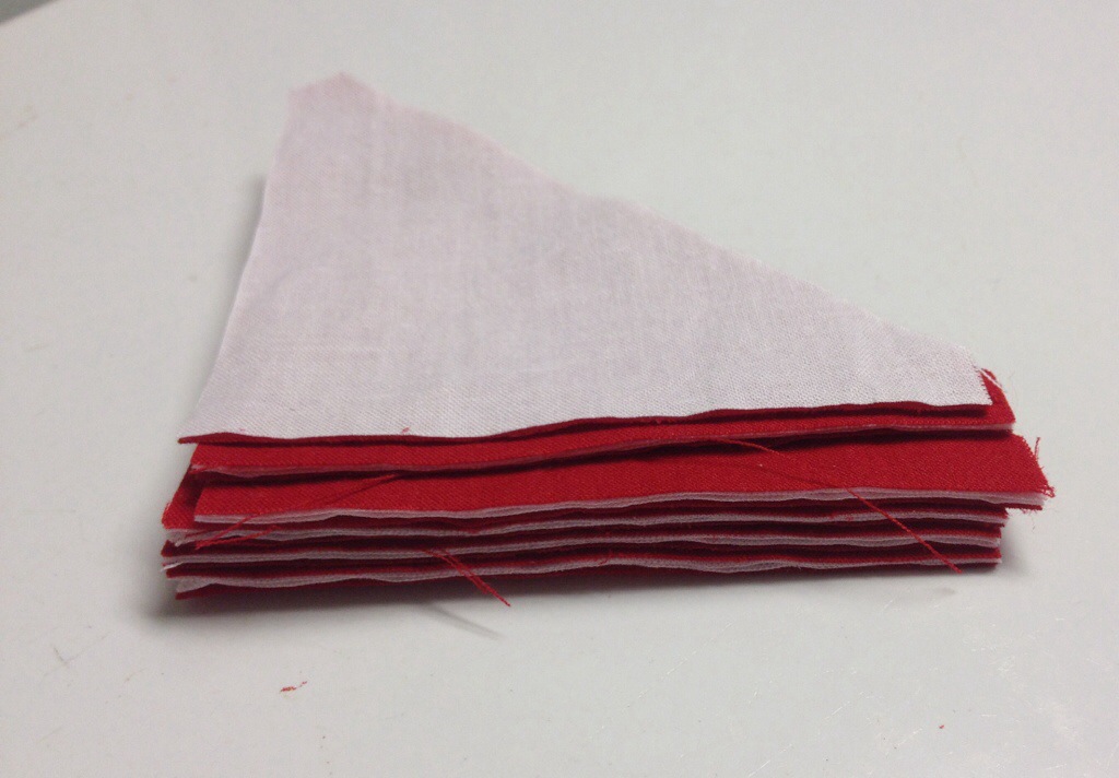 I layered the white and red when I ran them through the die cutter so they would be all ready to pick up and sew.