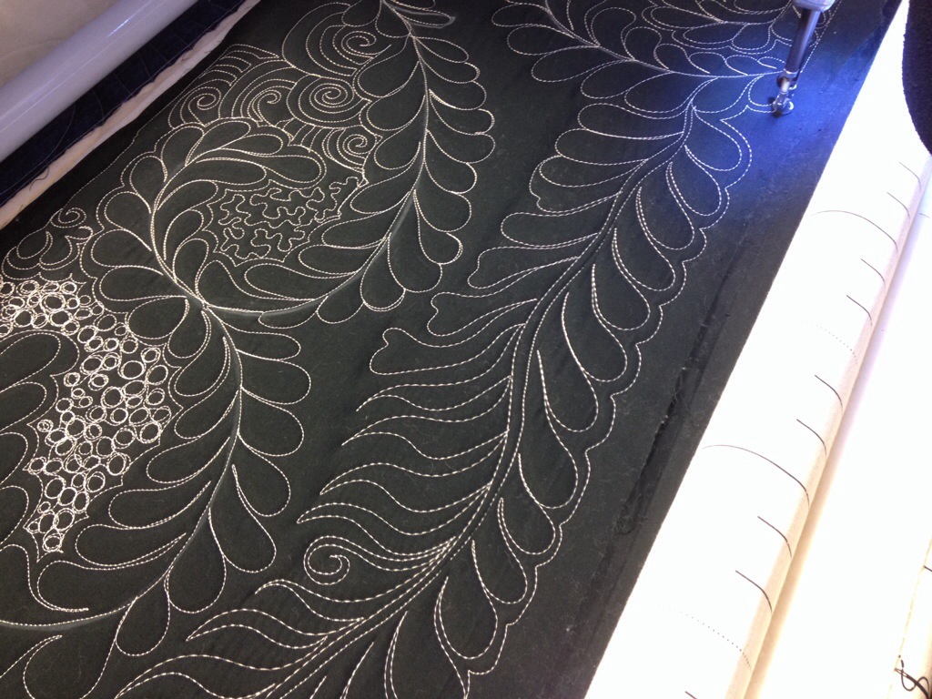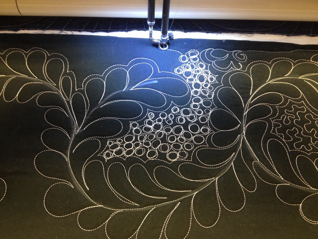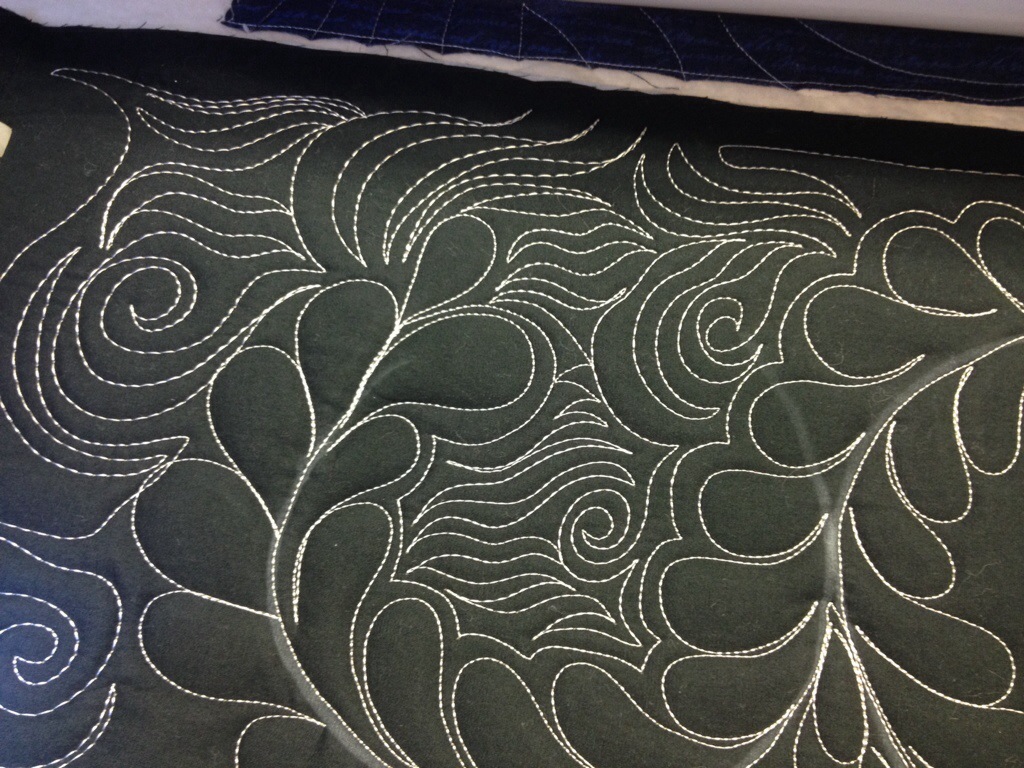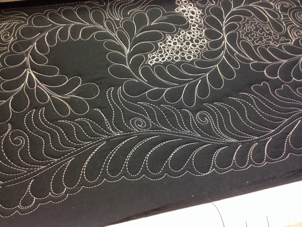 Love the feathers and fill on photo #6! Angela Walters spoke at our Portland Modern Quilt Guild, and I bought her book and took the modern quilting class on Craftsy. Haven’t done the feathers class yet. I am doing her stuff on my domestic machine. I’m starting with small quilts and working my way up to see how big I can manage.