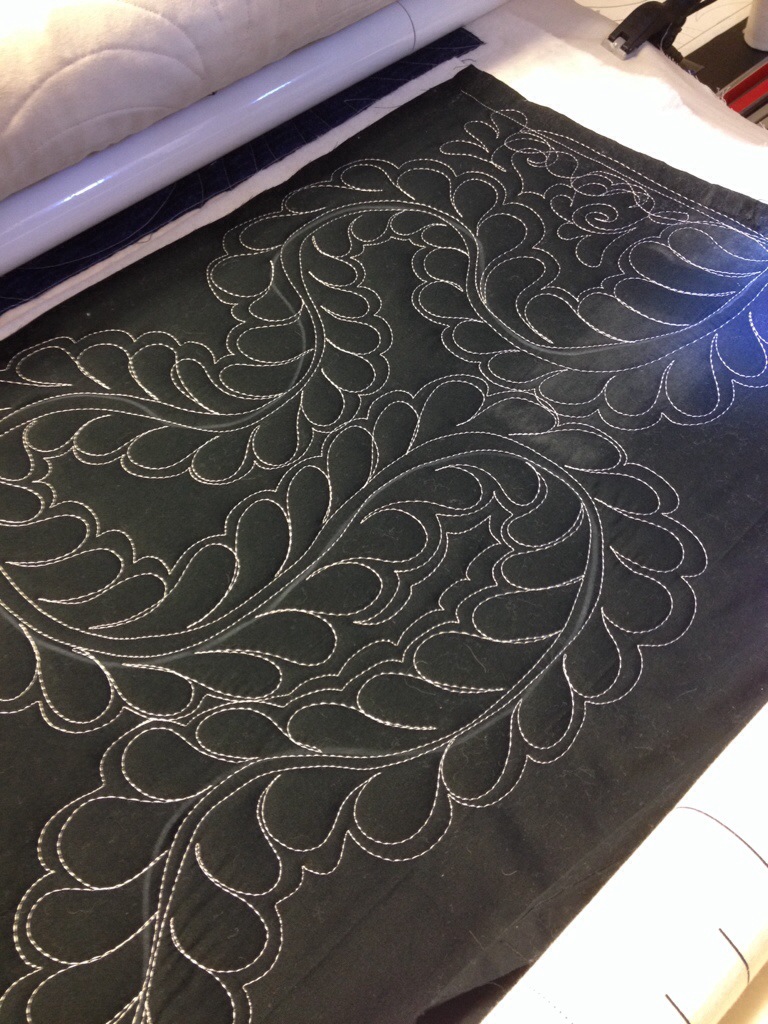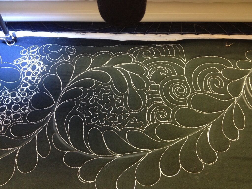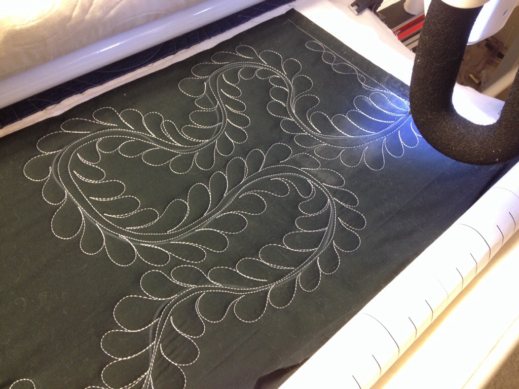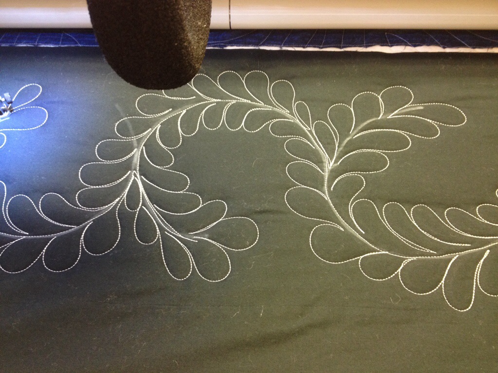 Love the feathers and fill on photo #6! Angela Walters spoke at our Portland Modern Quilt Guild, and I bought her book and took the modern quilting class on Craftsy. Haven’t done the feathers class yet. I am doing her stuff on my domestic machine. I’m starting with small quilts and working my way up to see how big I can manage.