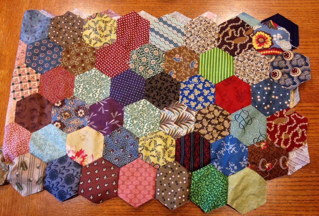 Hexies are great for filling in during slow times. I just can’t do it in a moving car due to motion sickness. But I do sew them when I’m waiting. Love the scrapiness of your piece. I invite you to link to Hexie Weekend so others can see your hexies. Nice road trip!