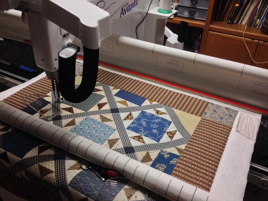 I loaded my little Midwinter Blues quilt into the frame and started quilting last night. I also want to finish this today.