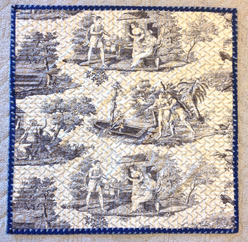 I quilted this with Superior mono-poly in the top and Magnasoft in the bottom. I used a piece of toile I purchased way back when we lived in France for the back.