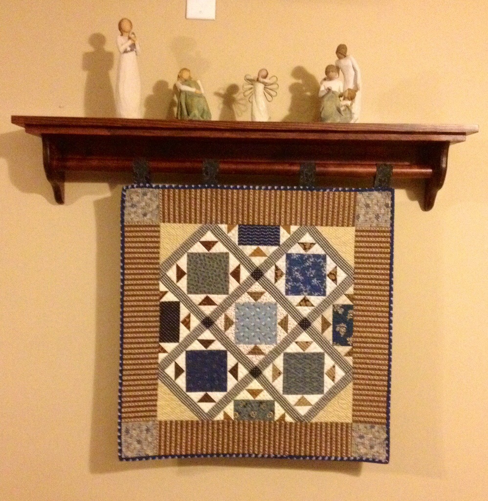 I finished up my small Midwinter Blues quilt this week. I love Lori’s quilt alongs and this one has been great fun. The instructions for each step are still up and you can find step one here. I really love how this little quilt turned out. I made my blocks a bit bigger than hers and my quilt finishes at about 27 inches square. I am thinking about making a bigger quilt with these same blocks.