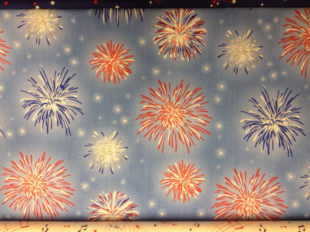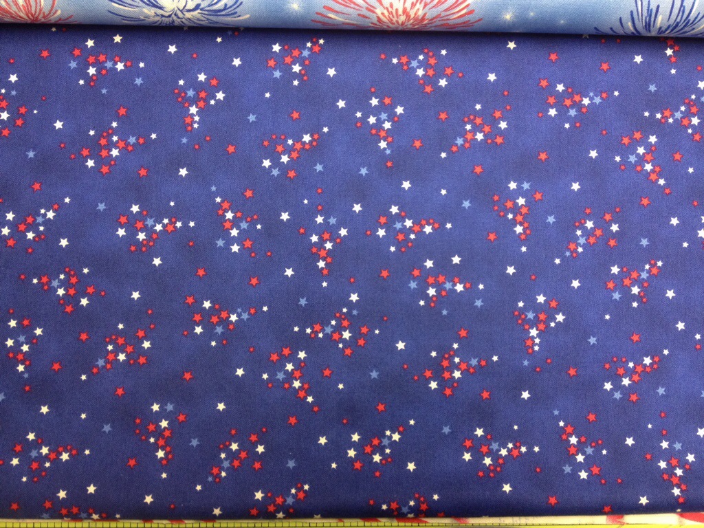 Your four-footed helper is so cute! A patriotic quilt is on my list. Love the fireworks fabric.