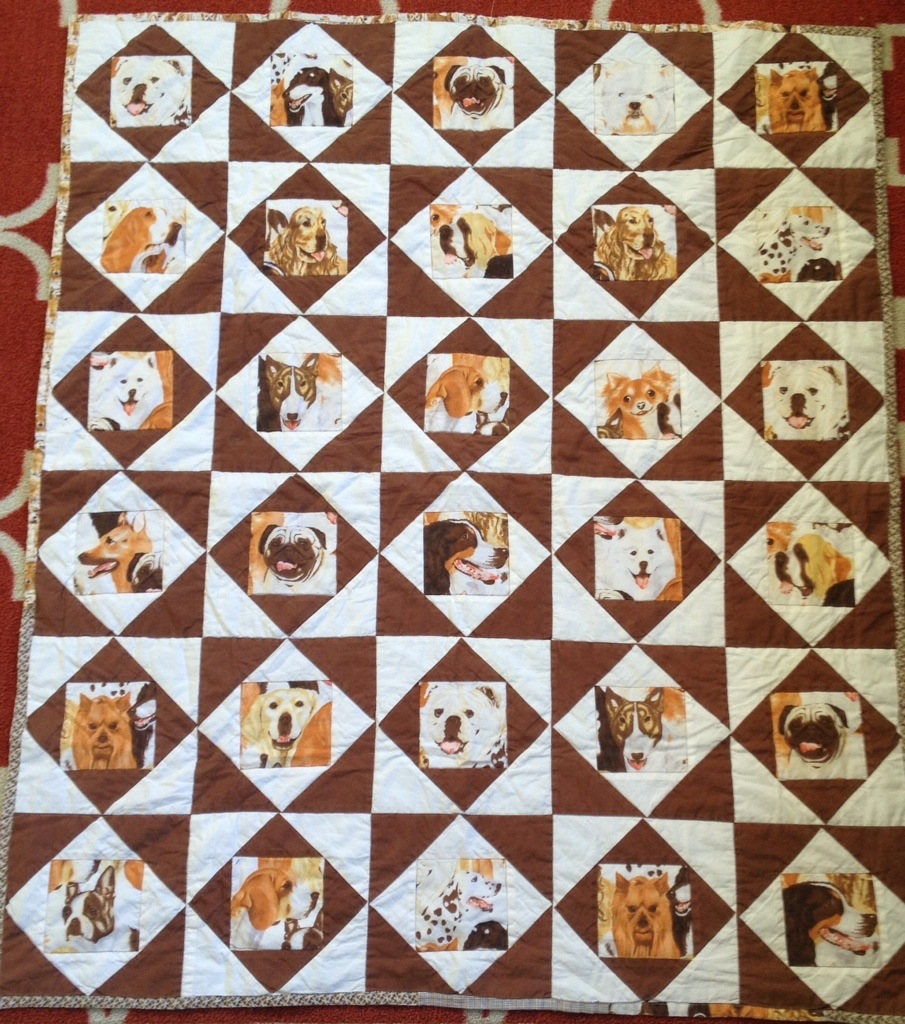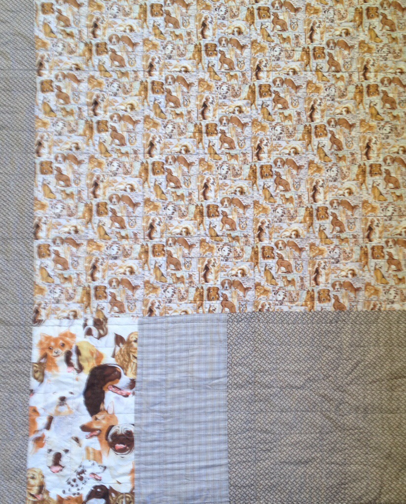 While visiting Daughter #2, I thought I would take pics of a very old quilt that I made for her. She has always loved dogs and back in about 1998, I found some great dog fabric and ordered it. We were loving in France at the time and someone that visited is hand carried it over the pond!
